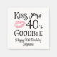 Funny Birthday Kiss Your Decade Goodbye Custom Party Paper Napkins. Celebrate a birthday beginning a new decade with these funny party napkins featuring an editable age modern typography design for the saying KISS YOUR DECADE GOODBYE (the sample shows 40s) and personalised with your custom text. CHANGES: The personalised text font style, colour, size and placement as well as the graphics and background colours can be changed to coordinate with your party theme colours. NAPKIN OPTIONS: The sample is shown in the 4.75x4.75-inch Cocktail size on white--other sizes and napkin paper colours are available on the ordering page. ASSISTANCE: For help with design modification or personalisation, colour change, resizing, transferring the design to another product or you would like coordinating items, contact the designer BEFORE ORDERING via Zazzle Chat or makeitaboutyoustore@gmail.com.