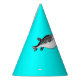 Birthday party hat featuring a cartoon fish making a wish blowing out a birthday candle.