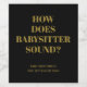 A cute, unique way to announce a baby is on the way! With a black background, the large gold typography reads "How Does Babysitter Sound?!". Underneath, in simple modern gold typography you can add your family name and due date.
