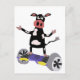 Funny black and white cow is riding on a hoverboard in this fun original art design.