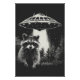 Funny Black and White Space Racoon UFO Poster