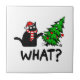 Funny Black Cat Gift Pushing Christmas Tree Over C Tile
