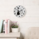 Funny Black Cat in Black and White Flower Garden Large Clock