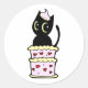 Funny black cat jumping out of a cake classic round sticker