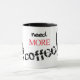 This mug will bring a smile. The image is of a fierce cartoon black cat that is aggravated and looks ready to claw someone's eyes out! The text in the centre in red and black says "Need more coffee." The cat image is printed on two sides. Cute!