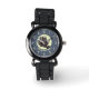 A funny black cat ninja on a watch. Use "Personalise this template" to tweak the "IT'S ACTION TIME!" text and create a unique, customised gift. Time your secret missions with this watch, featuring a cool black cat, silhouetted by the full moon, doing a flying kick. The flying feline is kitted out in ninja gear with belt and swords.