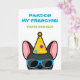If you know someone who loves french bulldogs and has a good sense of humour, this funny frenchie birthday card is ideal for sending to them on their special day. The design features a cartoon-style illustration of a black coloured french bulldog wearing a party hat and sunglasses with the wording "Pardon my frenchie! You're how old?" written on the front. This design is also available with different coloured french bulldogs.