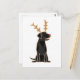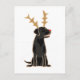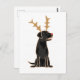 Funny Black Lab with Reindeer Antlers Christmas Postcard