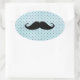 Funny Black Moustache On Teal Blue Polka Dots Oval Sticker