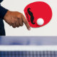 Funny black moustache table tennis ping pong paddle. Personalised name or monogram pingpong paddle for tabletennis Sports / game gift idea for men women and kids. Cute handlebar moustache design. Custom background colour. Fun for player and coach.