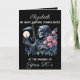 Searching for a funny 30th birthday card with a dark twist? This Grim Reaper 30th Birthday Card for Women is the perfect choice! With a sleek black background and bold white text, this card delivers a striking look. The front features a beautifully detailed watercolor illustration of the Grim Reaper—also known as the Angel of Death—clad in a traditional black cloak, holding a lit candle and pink roses in one hand, and a scythe in the other. His skeletal face and hands are prominently displayed, while a crow ominously soars in the background. The cover reads: '[Person's Name], My Deepest Condolences on the Passing of Your 20s.'