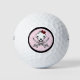 Gift your friend these Golf balls with this cute and scary cartoon of a Jolly Kitty Pirate Skull and Bones. The background is pink.