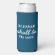 Funny "Blessed Shall Be Thy Basket" Blue & White Seltzer Can Cooler