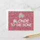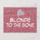 Funny Blonde to the Bone Quote postcard....are you blonde to the bone? Have someone in your life that is? Then, you'll love this funny blonde saying printed on pink glitter background with a white glitter heart. (Not real glitter---glitter graphic so no mess when mailing!)