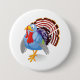 Funny Blue Cartoon Turkey with Patriotic Feathers 7.5 Cm Round Badge