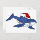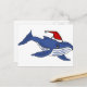 Funny Blue Whale in Santa hat Christmas Art Holiday Postcard