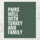 Want to know what this wine pairs well with? Turkey and family. Nothing goes better with family than wine. This funny wine label that can be customised with your own wording ( like "pairs well with in-laws" or "pairs well with lumpy mashed potatoes") matches the modern Thanksgiving invitation suite by Lea Delaveris Design. The green background colour can be changed by clicking "Customise."