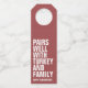 Not sure what your wine pairs well with? Try family drama. Always a perfect pairing. This funny wine bottle tag hanger is a perfect Thanksgiving dinner addition. The bold white wording "Pairs well with turkey and family" is editable, as is the "Happy Thanksgiving." The mauve background can be changed by clicking "customise." Perfect gift for the turkey day host or hostess with a sense of humour.