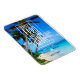 Tropical palm tree-lined beach wedding save the date magnets in our funny "Booze, food and bad dance moves" design. These save the dates are perfect for the fun couple and their beach destination wedding.