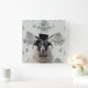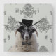Funny humourous collage of a funny cute sheep illustration wearing a bridegrooms top hat and bow tie with grey vintage damask background. For matching products and more fun animal humour collage art visit the VINTAGE PRINTS STORE.