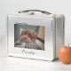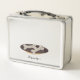 This is a standard metal lunchbox that appears to work just fine. We designed this box ourselves with an uploaded photo and custom text on the front and back. It looks absolutely beautiful except the front of the lunchbox is not centered like it shows in the photo. The print borders don't align with the inset flat part of the box where the preview photo online showed it perfectly centered in there. The back looks nice and centered though.