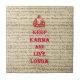 Funny humourous take on the popular "keep calm" slogan with a Buddhist theme. "Keep Karma and Live Longa" red text on an antique vintage Buddha book illustration on a vintage paper background.