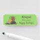 Funny bull driving bulldozer cartoon name tag
