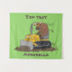 Funny bull driving bulldozer cartoon tapestry