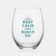 Funny Bunco Party Stemless Wine Glass. Keep Calm and Bunco On! Complete with crown and bunco dice. Perfect as a prize or gift for your next Girls Night Out! Modern and stylish.