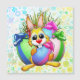 Funny and Cute Easter Bunny Cartoon Character biting a decorated Egg. Original Digital Art Copyright BluedarkArt.