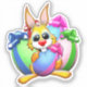 Funny and Cute Easter Bunny Cartoon Character biting a decorated Egg. Original Digital Art Copyright BluedarkArt.