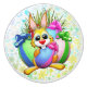 Funny and Cute Easter Bunny Cartoon Character biting a decorated Egg. Original Digital Art Copyright BluedarkArt.