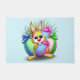Funny and Cute Easter Bunny Cartoon Character biting a decorated Egg. Original Digital Art Copyright BluedarkArt.