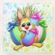 Funny and Cute Easter Bunny Cartoon Character biting a decorated Egg. Original Digital Art Copyright BluedarkArt.
