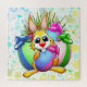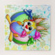 Funny and Cute Easter Bunny Cartoon Character biting a decorated Egg. Original Digital Art Copyright BluedarkArt.