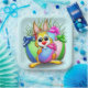 Funny and Cute Easter Bunny Cartoon Character biting a decorated Egg. Original Digital Art Copyright BluedarkArt.