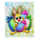 Funny and Cute Easter Bunny Cartoon Character biting a decorated Egg. Original Digital Art Copyright BluedarkArt.