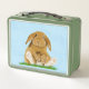 This is a standard metal lunchbox that appears to work just fine. We designed this box ourselves with an uploaded photo and custom text on the front and back. It looks absolutely beautiful except the front of the lunchbox is not centered like it shows in the photo. The print borders don't align with the inset flat part of the box where the preview photo online showed it perfectly centered in there. The back looks nice and centered though.