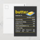 Funny Butter Nutrition Facts Food Fat Humour Postcard