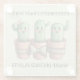 Let one and all know that you have a weakness for (even the prickliest) green growing things with this whimsical glass coaster, which features AI-generated artwork of cute potted baby cactuses rendered in soft pastel tones. Customise top and bottom messages as desired. A great gift idea for gardeners and horticulturists!
