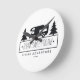 Unique camping wall clock for RVing campers who like to travel- Rustic black and white camping design features a classic vintage travel trailer silhouette and pine trees. Reads ROAM SWEET ROAM below in whimsical letters. Play on classic quote Home Sweet Home. Option to customise text. Unique retirement gift for retiree roam around in their RV. Or nice gift for any RVers or camping addicts. Option to add a background colour as well! Unique camping home decor that would be perfect in an RV, log cabin, or fifth wheel camper. Great RV business office clock or for an RV salesperson. Just add business name, personal name, or slogan.
