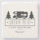 Funny home decor for her or for on the road with your RV is this funny camping stone coaster featuring a classic vintage travel trailer silhouette surrounded by pine trees. Reads QUEEN OF THE RV in black below in whimsical letters. Or add last name or any custom text. Reads LIVING ADVENTURE below that and SINCE with custom year. Makes perfect personalised retirement gift for retiree ready to go see the world in their RV. Or nice personalised gift for any RVers. Would look great in a rustic cabin or vacation lake house, too. Add a background colour or change the style, size, or colour of the monograms as well!