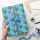 A funny capybara on wrapping paper. A simple no text version of my original capybara cartoon in a repeat pattern on a bright blue background. A rhythmic gymnast in a leotard holding an orange hula hoop.