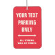 Make your own custom PARKING ONLY sign car air freshener dangling from your mirror. ALL OTHERS WILL BE TOWED. (at owners expense) Funny template for creating your own humourous car parking signage parody. Fun accessory for truck, car, bus, rv, construction vehicle. Red or custom colour background. Fun gift idea for friends and family. Fresh design to refresh your auto with different cool scents to mask stinky odours. Make it smell like a fresh new car or beach and sea. Double sided design.