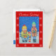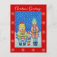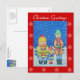 The original funny Christmas illustration on this seasonal postcard has three cute carol singers enthusiastically singing a festive tune in the December snow. The snow is falling all around them, but they’re warmly wrapped in their red and yellow and red and green knitted stripy hats and scarves to keep the chill of winter out. This original humorous Christmas picture of the three little singers looks very seasonal on this postcard, the colors are nice and bright to bring festive cheer and a smile to the face of the special people who receive it as a Christmas greeting from you. I think this cute image makes a lovely postcard. This original art postcard is suitable to send to family and friends, it also makes a cute children’s Christmas holiday postcard.