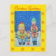The original funny Christmas illustration on this seasonal postcard has three cute carol singers enthusiastically singing a festive tune in the December snow. The snow is falling all around them, but they’re warmly wrapped in their red and yellow and red and green knitted stripy hats and scarves to keep the chill of winter out. This original humourous Christmas picture of the three little singers looks very seasonal on this postcard, the colours are nice and bright to bring festive cheer and a smile to the face of the special people who receive it as a Christmas greeting from you. I think this cute image makes a lovely postcard. This original art postcard is suitable to send to family and friends, it also makes a cute children’s Christmas holiday postcard.