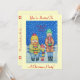 The original funny Christmas illustration on this customisable christmas invitation has three cute carol singers enthusiastically singing a festive tune in the December snow. The snow is falling all around them, but they’re warmly wrapped in their red and yellow and red and green knitted stripy hats and scarves to keep the chill of winter out. This original humourous Christmas picture of the three little carol singers looks very seasonal on this festive invitation, the colours are nice and bright to bring festive cheer and a smile to the holiday season. This is a customisable christmas invitation, you can personalise it with your own text. You'll find a christmas carol singer envelope to match this party invitation in the envelopes catagory of my store. Happy Christmas!