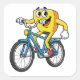 Cheerful cartoon character riding a blue bicycle with a big smile and playful expression. Featuring bright colors, expressive eyes, white gloves, and red sneakers, this fun illustration represents joy, movement, fitness, and outdoor adventure. Perfect for kids designs, cycling themes, fitness branding, stickers, posters, apps, games, educational content, social media, and creative digital or print projects.