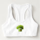 Funny broccoli sports bra with a funny illustration of a big eyed cartoon broccoli. This funny broccoli design will appeal to a cook, vegetarian, vegan and people who love broccoli and vegetables.