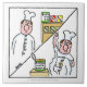 Funny Little Chef Cartoon Button Mushrooms Cute Trivet Kitchen Tile features a little cook with a missing button sewing on a button mushroom! Know someone who loves to cook with mushrooms? Think delicious edible fungi like portobellos, shiitakes, oyster, morel and other varieties? When you're not using this humorous fun kitchen tile for hot pots and pans, you can prop it up against the wall on the kitchen counter like a big fridge magnet to amuse guests family! Makes a neat gift for a chef dad or mom on Fathers Day or Mothers Day, not to mention Christmas or a birthday. But the sewing cartoon could make it a cute trivet for a bachelor who has to sew on his own buttons!